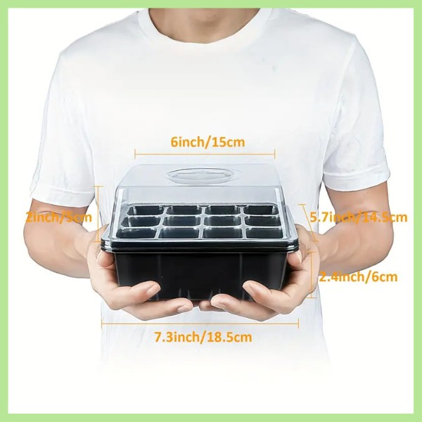 Každá tácka má 12 otvorov a viečko s vetracím prepínačom. Teraz môžete kontrolovať úroveň vlhkosti a zabezpečiť najlepšie prostredie pre vaše sadenice. Pestujte zdravé, dobre prevzdušnené korene pre silnejšie rastliny.